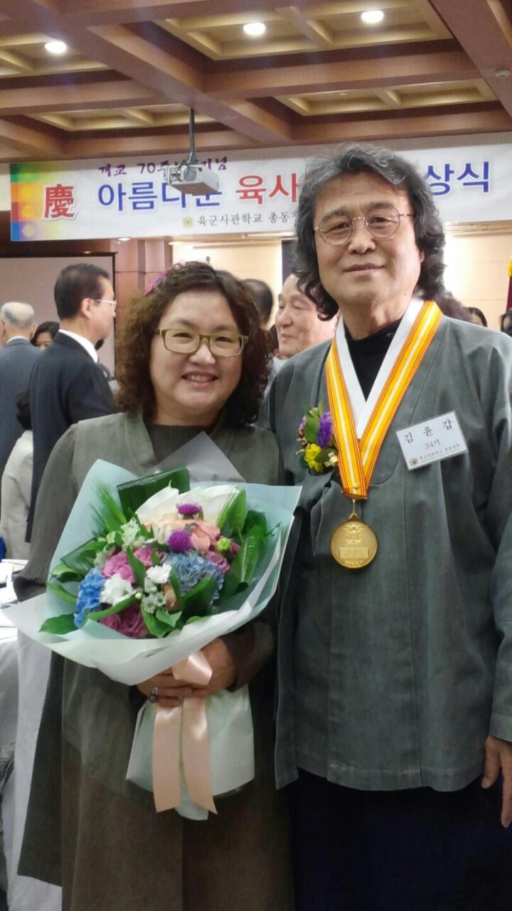 [한의신문=강환웅 기자]김윤갑 늘푸른김윤갑한의원장(전 원주횡성분회장)이 지난달 29일 육군사관학교(이하 육사) 화랑연병장에서 개최된 '아름다운 육사인상(이하 육사인상) 시상식'에서 육사인상을 수상했다. 이번 육사인상은 육사 개교 70주년을 기념해 마련된 것으로, 국가안보에 기여한 동문이 아닌 평소 사회의 어려운 사람들을 위해 노력하는 동문들을 동기생들의 추천으로 수상자를 선정해 눈길을 끌고 있다.