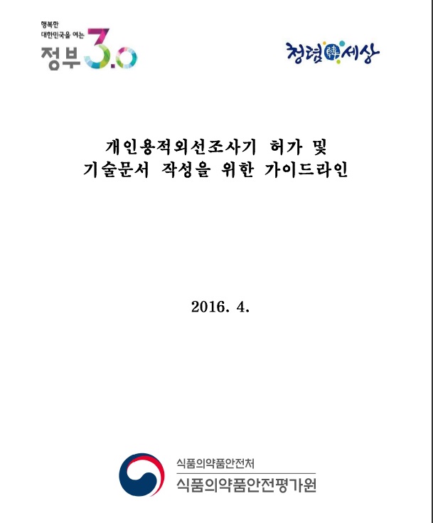 [한의신문=강환웅 기자]식품의약품안전처 식품의약품안전평가원(이하 평가원)은 개인용 적외선조사기, 전자체온계, 개인용 전위발생기에 대한 허가·심사 신청시 기술문서 작성방법을 자세히 안내하기 위해 가이드라인을 발간했다고 26일 밝혔다.