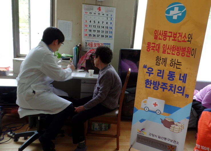 한의주치의사업은 일산동구보건소와 동국대학교 일산한방병원이 협약을 맺고 풍산동·중산동·식사동 일대 경로당을 방문해 매월 1회 무료 한의진료를 실시하는 것으로 침 시술, 골다공증 검사, 기초 건강체크 등이 진행됐다.