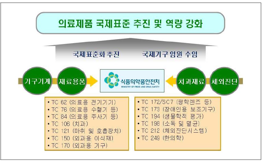 식약처가 최근 공고한 '제4차 국가표준기본계획 식품의약품안전처 2016년도 시행계획'에 따르면 의료제품 분야 산업표준 제·개정 등 표준 개발 및 국제표준화 기반 마련과 더불어 산업표준과 기준규격의 효율적인 통합운영 관리방안 마련, 소비자 안전을 위한 품질인증제도 도입 등을 목표로 △스마트·융복합 신산업 표준화 확대 △시장주도형 국제표준 선점 강화 △기업친화형 표준적합성 체계 확립 △안전한 생활 표준화 강화 △소통·개방형 표준체계 혁신 등을 추진해 나갈 계획이다.