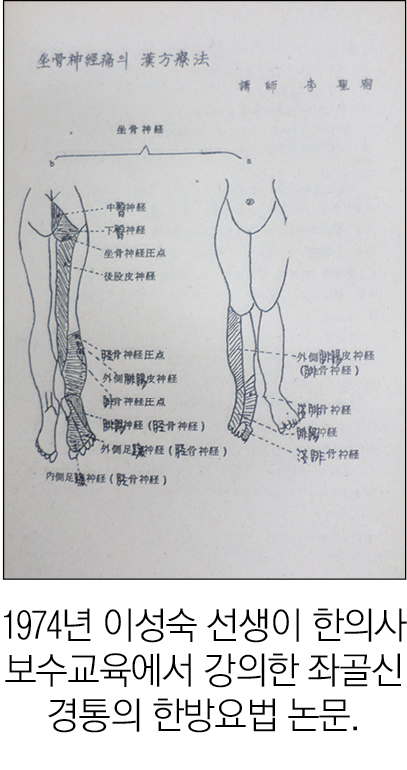 1974년 발표한 李聖宿先生의 ‘坐骨神經痛의 한방요법’