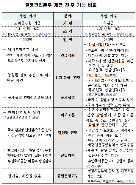 (사진설명: 질병관리본부 개편 전․후 기능 비교)