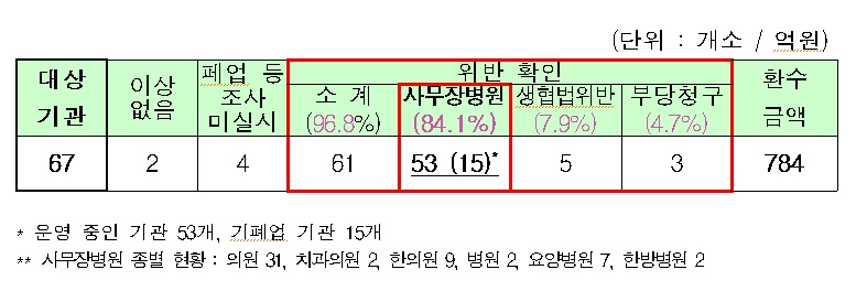 의료생협 빙자한 사무장병원 53개소 적발...784억원 부당청구 확인