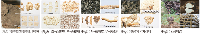 한약재로 다용되는 多孔菌科에 속한 종류 중 대표적인 것이 茯苓이며 죽은 소나무 뿌리에 기생하는 균핵덩어리 한약재이다. 임상에서는 오래 전부터 아주 높은 사용빈도를 가지고 있으며, 이와 같은 사용비중이 높음으로 인해 자연상태의 약재 채취가 힘들어 최근에 인공배양되어지고 있는 것을 볼 수 있다.