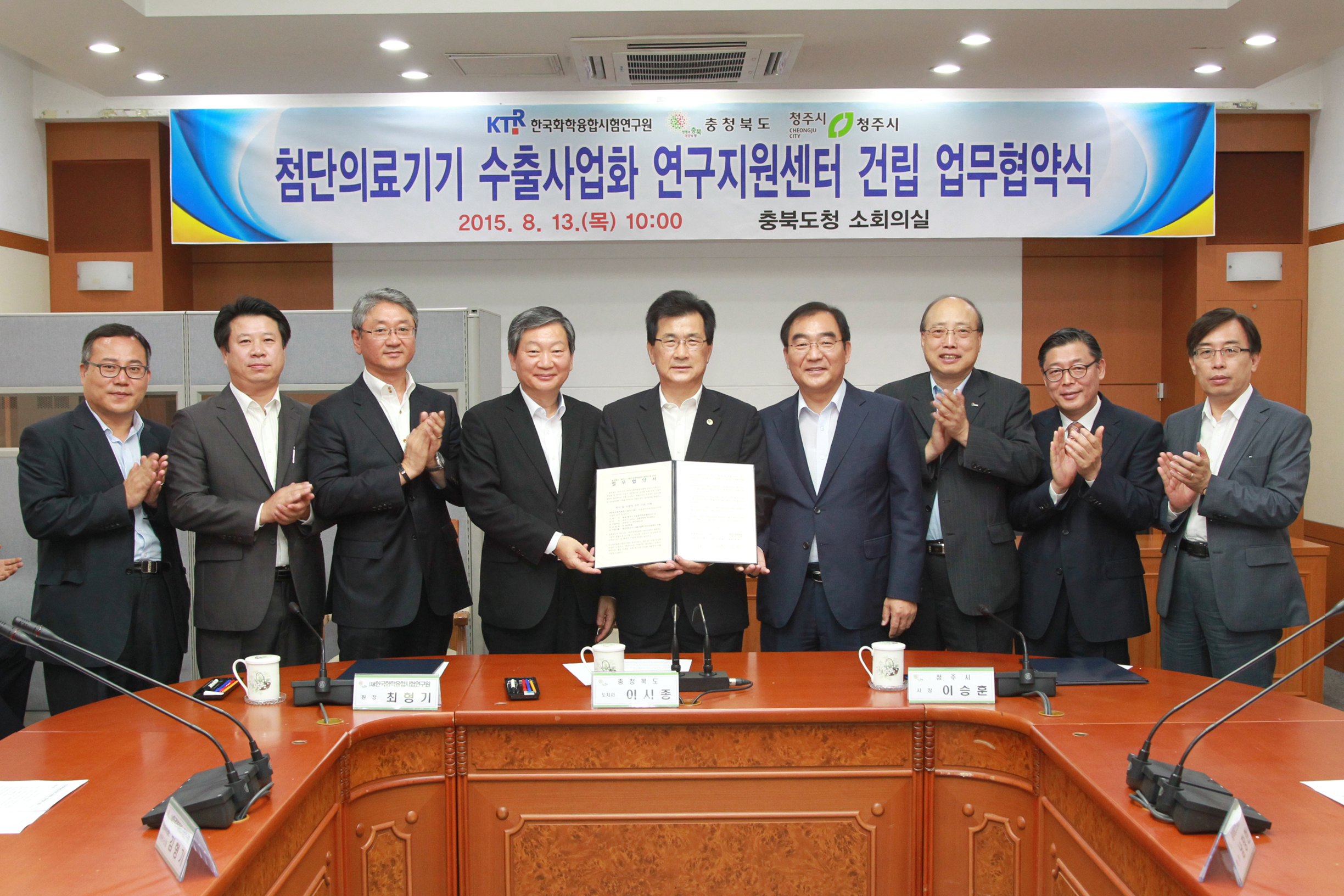 충청북도는 최근 청주시 및 한국화학융합시험연구원(이하 KTR)과 오송 첨단의료복합단지내 ‘첨단의료기기 수출사업화 연구지원센터(이하 연구지원센터)’ 건립을 위한 3자 업무협약(MOU)을 체결, 의료기기 등 바이오산업 수출 활성화 지원을 위해 적극 협력키로 했다고 밝혔다.