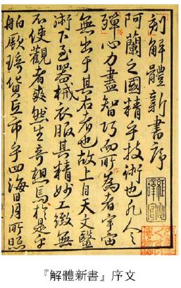 蘭學을 그래도 기존의 전통에 기반하여 수용하려던 차원을 넘어서, 원형 그대로 도입하여 이식하려는 움직임이 나타났는데 바로 『解體新書』의 간행(1774년)이다. 『解體新書』는 독일의 요한 아담 쿨무스(Johann Adam Kulmus,1689-1745)가 1722년에 지은 A n a t o m i s c h e Tabellen의 네덜란드어 번역본을 스기타 겐파쿠(杉田玄白) 등이 번역한 해부학 서적이다. 스기타 겐파쿠는 마에노 류타쿠(前野良澤), 나카가와 준안(中川淳庵) 등과 1771년에 에도에서 이루어진 사형수 시체의 해부를 참관하고 나서 쿨무스의 책을 번역하기로 뜻을 모으고 작업을 시작하였다. 이후 한문으로 번역하여 총 4권과 해부도가 실린 부록 1권으로 1774년에 출간되었다. 『解體新書』는 쿨무스의 책뿐만 아니라 다른 해부학서의 내용도 추가하였고, 神經, 軟骨, 門脈 등의 용어도 이때 만들어졌는데, 神經의 경우 神氣의 神과 經脈의 經을 따서 조합한 말이다. 『解體新書』의 간행은 단지 의학분야 뿐만 아니라 지식인을 포함한 사회 전반에 큰 영향을 주었는데, 이때부터 본격적으로 蘭學이 일본에 이식되었으며 이후 蘭學은 곧 洋學으로 발전하게 된다. 역사학자들이 『解體新書』의 간행을 蘭學 유행의 시작점으로 보는 것도 이 때문이다. 이후 일본에서는 『解體新書』를 보완 확충하거나 요약한 책들이 출간되었으며, 메이지유신 전후로 서양의학이 본격적으로 도입되면서 해부학과 생리학을 결합한 의학 교재들이 많이 편찬되었다.
