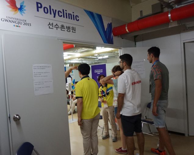 광주유니버시아드 대회 선수촌병원 한의과진료실 외국인 환자들로 북새통