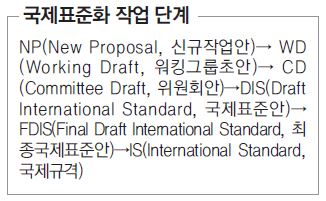 단계별로는 NP 9건, WD 6건, CD 1건, DIS 3건이다. DIS 단계에 있는 3건은 늦어도 내년 초 국제표준으로 발표될 수 있을 것으로 보인다.