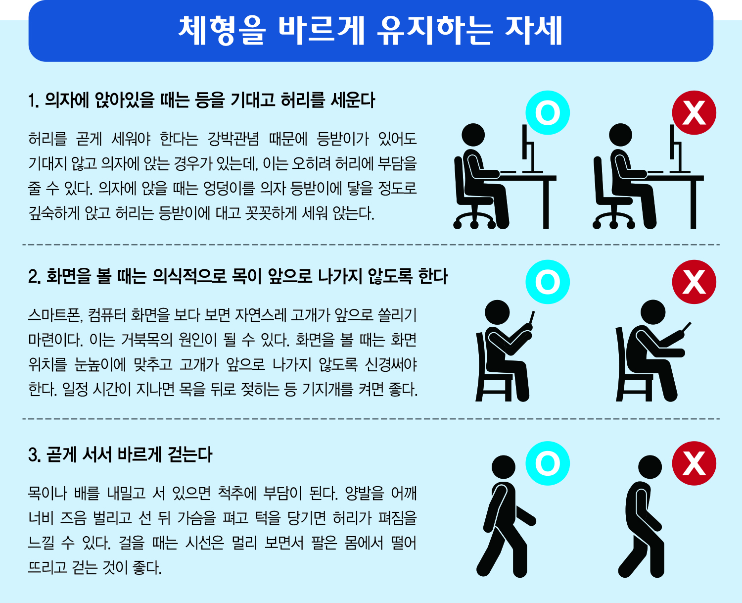 추나요법을 통해 뼈와 근육을 바로잡을 수 있지만 이후에도 올바른 자세를 유지하는 습관이 필요하다.