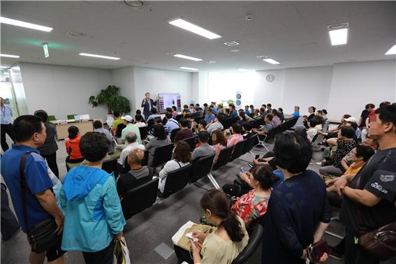 [한의신문=강환웅 기자] 국민건강보험공단 김용익 이사장은 이달 16일 외국인·재외국민 지역가입자 당연가입제도 시행을 앞둔 가운데 11일 서울 구로구 신도림에 위치한 서울권역 외국인 민원센터를 방문해 현장점검에 나섰다.