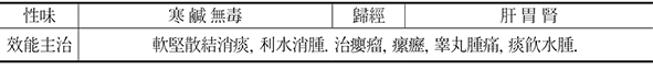 이상의 내용을 종합하면, 이상 3품목 해양식물성 한약재는 淸熱化痰藥으로서 가치를 가지고 있으며, 특히 癭瘤와 瘰癧등의 전통처방에서 활용가치를 가지고 있는 것을 알 수 있다. 本草匯言의 ‘海帶 祛痰行水 下氣化痰 功同海藻昆布’라고 기록된 것과 같이 모두 비 슷한 효능을 나타내는 것으로 정리할 수 있다.