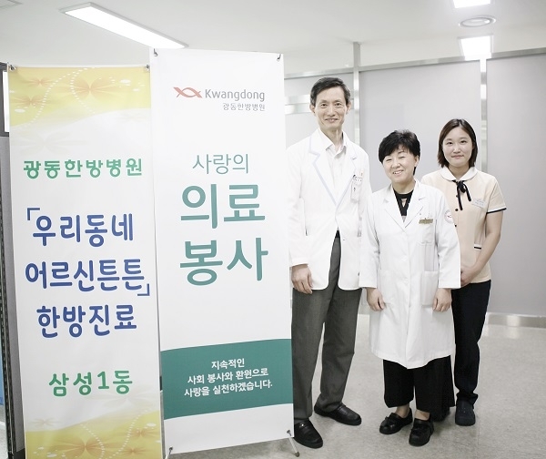 광동한방병원은 '지역사회 나눔문화에 적극 참여하겠다'는 이념을 바탕으로 삼성1동 주민센터와 지난 2월부터 인연을 맺은 뒤 정기적으로 지역 어르신들의 건강을 보살피고 있다.