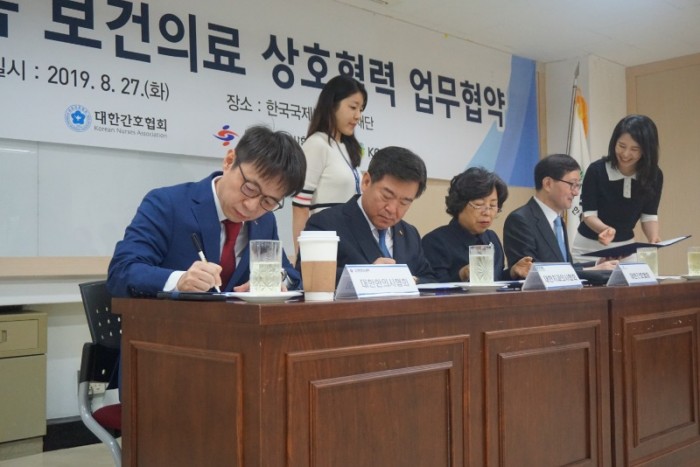 한의협은 27일 한국국제보건의료재단 대회의실에서 한국국제보건의료재단(이사장 추무진, 이하 KOFIH)와 대한치과의사협회(회장 김철수), 대한간호협회(회장 신경림)와 ‘국제 및 남북 보건의료 기관간 상호협력 증진’을 위한 업무협약(MOU)을 체결했다.