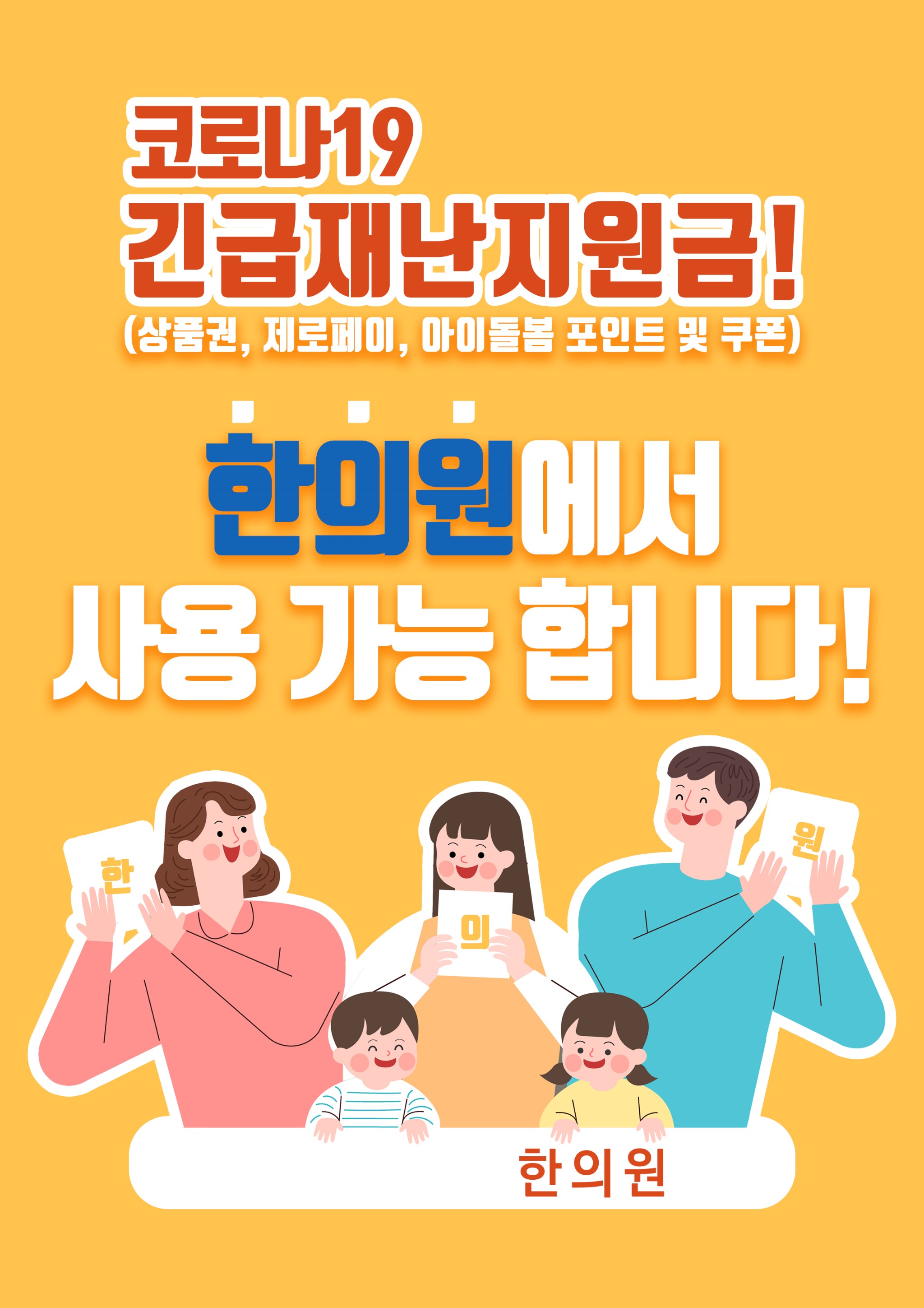 “정부 긴급재난지원금, 한의원에서도 사용 가능합니다”