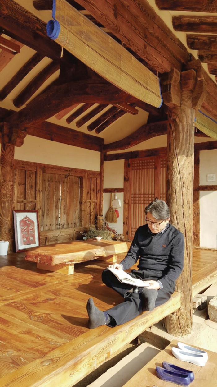 <희우당 대청에서 도덕경을 읽고 있는 필자>