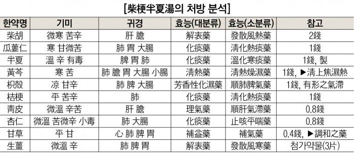 위의 구성 한약재 10품목을 痰性胸脇痛을 적응증으로 본초학적인 특징을 분석하면 다음과 같다.