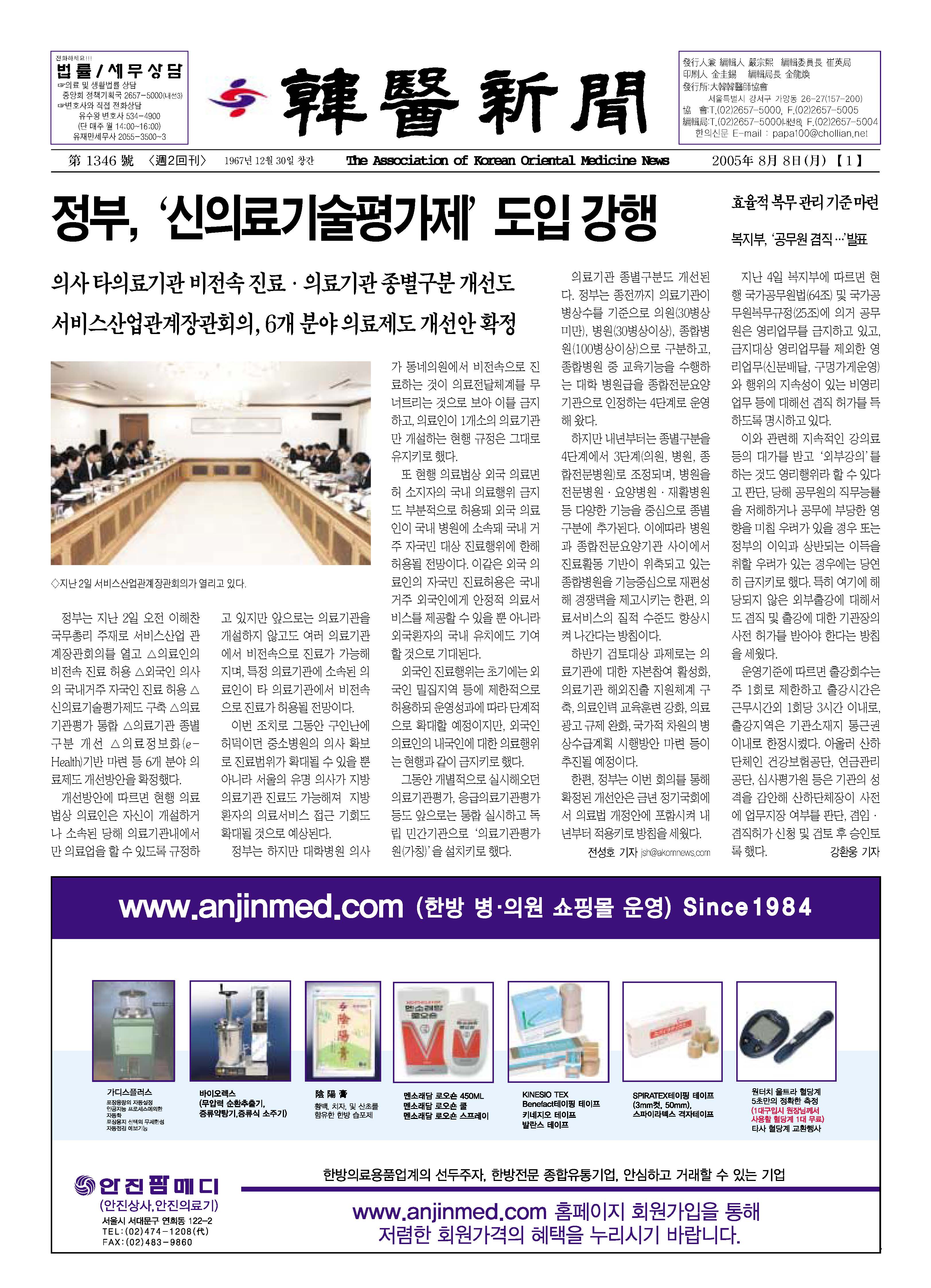 한편, 정부는 이번 회의를 통해 확정된 개선안은 금년 정기국회에서 의료법 개정안에 포함시켜 내년부터 적용키로 방침을 세웠다.