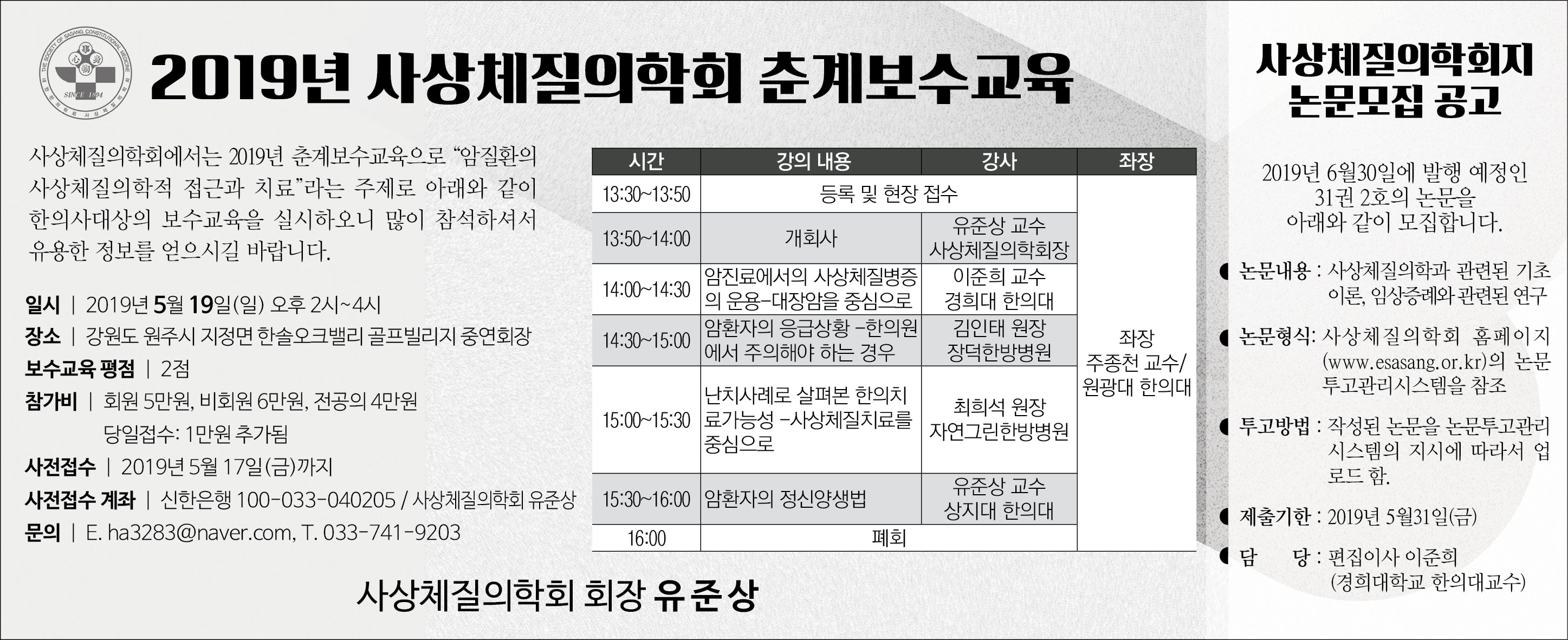 19/5/19 사상체질의학회 춘계보수교육 페이지 정보 작성자 작성일19-07-01 16:39 조회2,231회 댓글0건 관련링크 이전글 다음글 목록 본문 <아래 이미지를 클릭하시면 크게 보실 수 있습니다.> 댓글목록 등록된 댓글이 없습니다. 이전글 다음글 목록