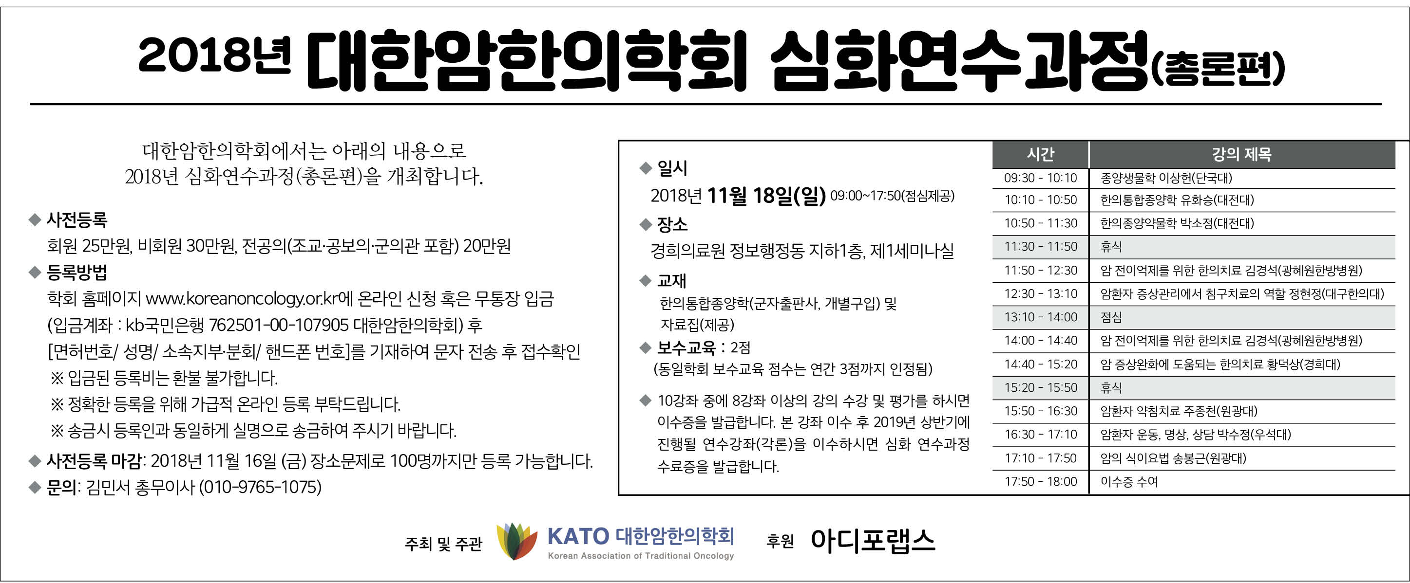 18/11/18 대한암한의학회 심화연수과정(총론편) 페이지 정보 작성자 작성일19-07-01 16:39 조회1,926회 댓글0건 관련링크 이전글 다음글 목록 본문 <아래 이미지를 클릭하시면 크게 보실 수 있습니다.> 댓글목록 등록된 댓글이 없습니다. 이전글 다음글 목록