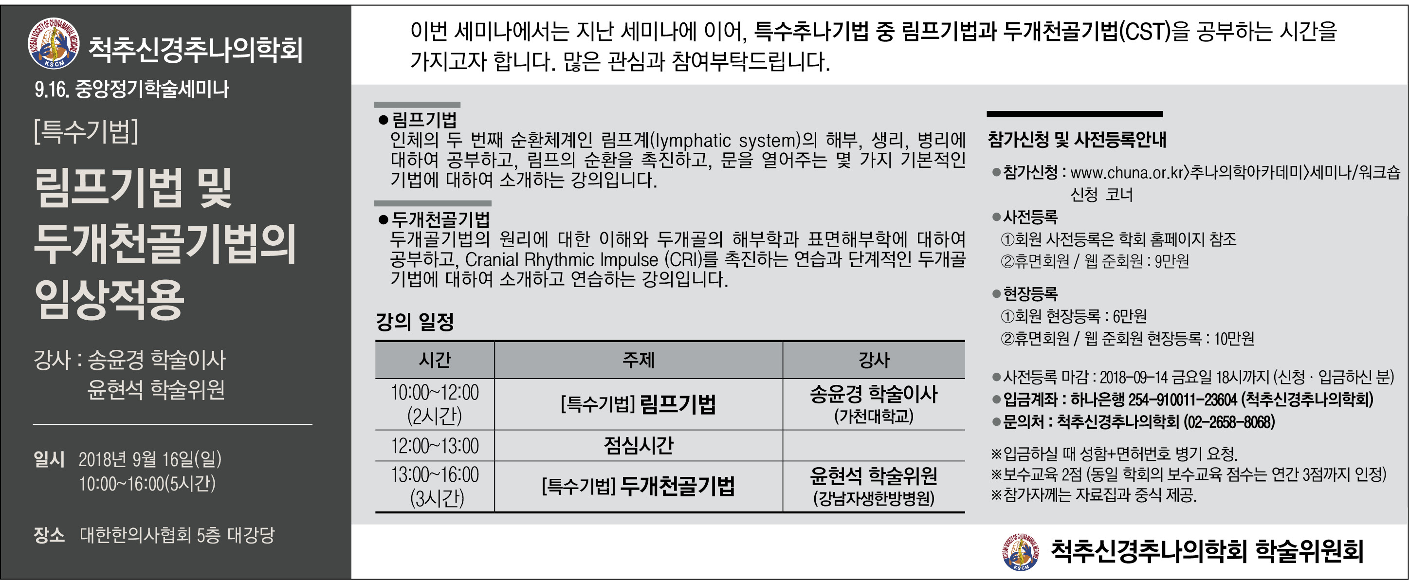 18/09/16 척추신경추나의학회 중앙정기학술세미나