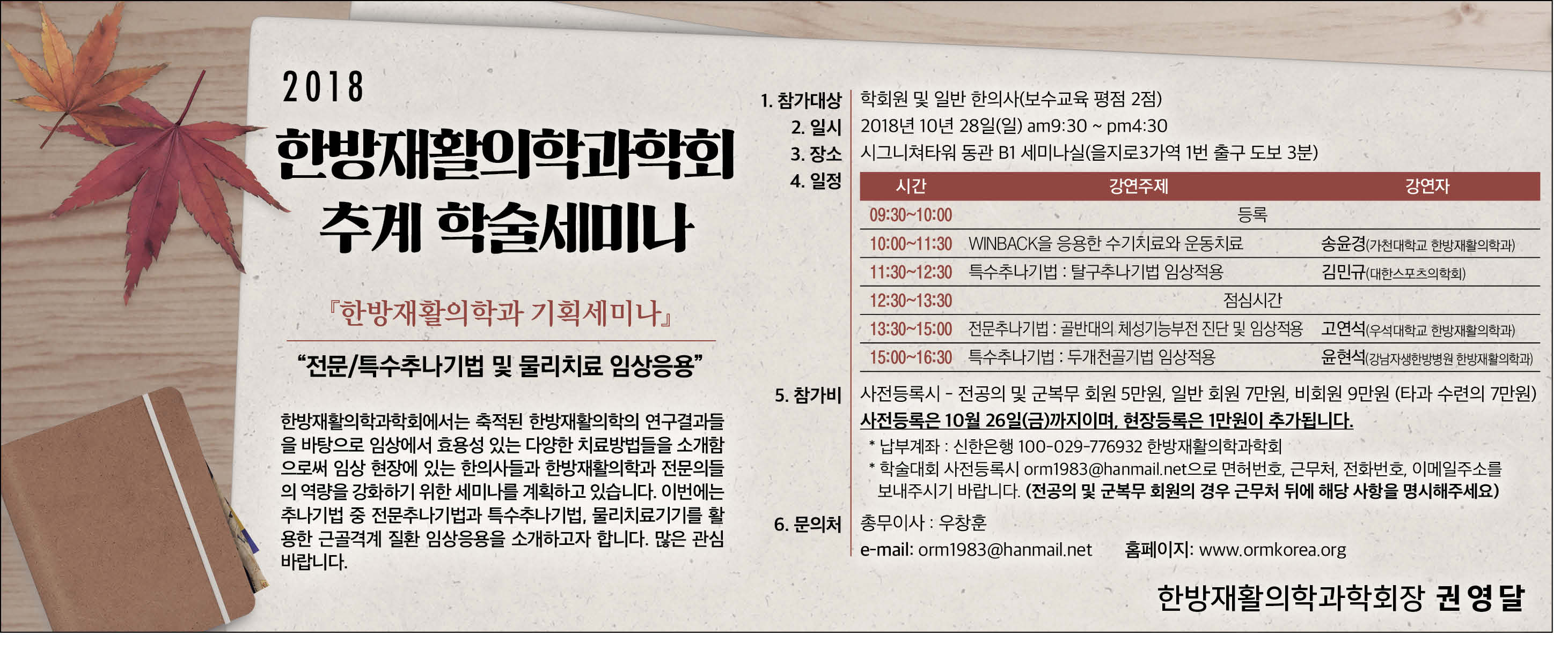 18/10/28 한방재활의학과학회 추계 학술세미나