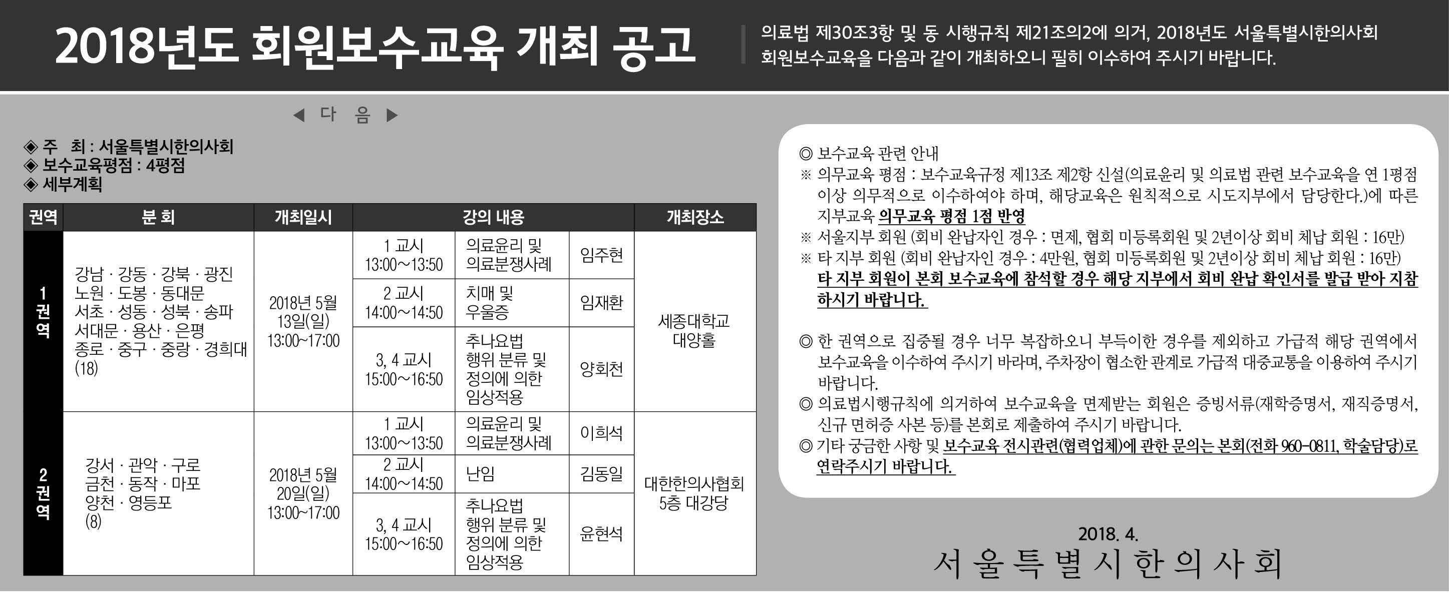 18/05/13,20 서울특별시한의사회 보수교육 개최 페이지 정보 작성자 작성일19-07-01 16:39 조회1,482회 댓글0건 관련링크 이전글 다음글 목록 본문 <아래 이미지를 클릭하시면 크게 보실 수 있습니다.> 댓글목록 등록된 댓글이 없습니다. 이전글 다음글 목록