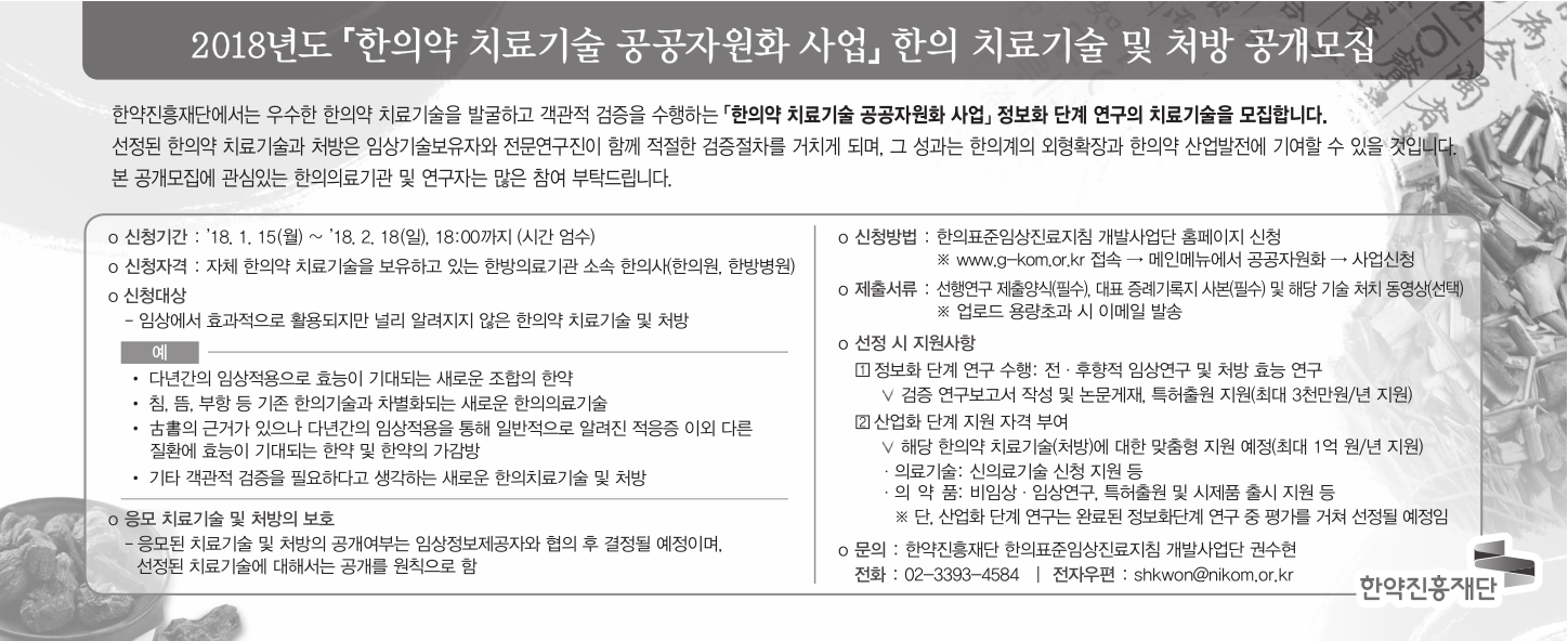 ~18/2/18 한의 치료기술 및 처방 모집-한약진흥재단 페이지 정보 작성자 작성일19-07-01 16:39 조회1,401회 댓글0건 관련링크 이전글 다음글 목록 본문 <아래 이미지를 클릭하시면 크게 보실 수 있습니다.> 댓글목록 등록된 댓글이 없습니다. 이전글 다음글 목록