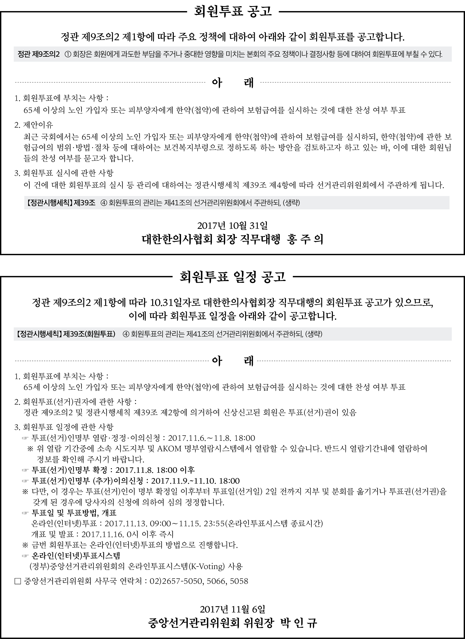회원투표 및 일정 공고