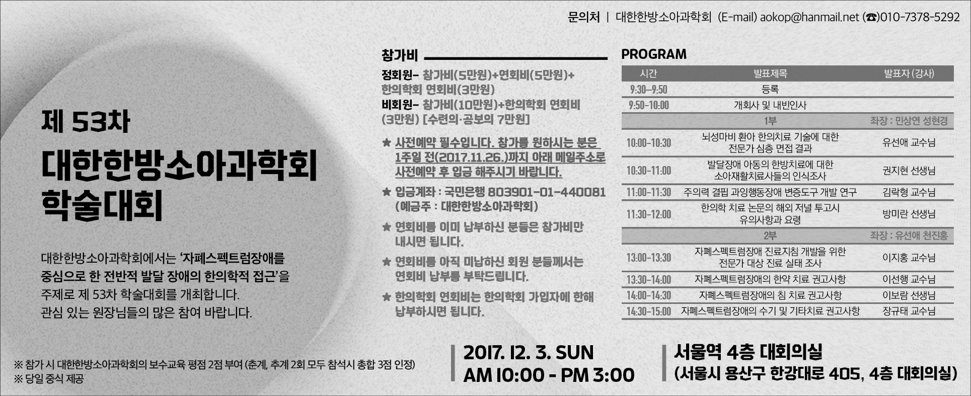 17/12/03 대한한방소아과학회 학술대회 페이지 정보 작성자 작성일19-07-01 16:39 조회1,208회 댓글0건 관련링크 이전글 다음글 목록 본문 <아래 이미지를 클릭하시면 크게 보실 수 있습니다.> 댓글목록 등록된 댓글이 없습니다. 이전글 다음글 목록