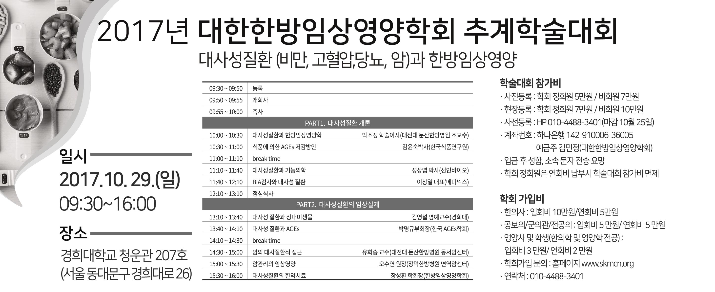 17/10/29 한방임상영양학회 추계학술대회 페이지 정보 작성자 작성일19-07-01 16:39 조회1,459회 댓글0건 관련링크 이전글 다음글 목록 본문 <아래 이미지를 클릭하시면 크게 보실 수 있습니다.> 댓글목록 등록된 댓글이 없습니다. 이전글 다음글 목록