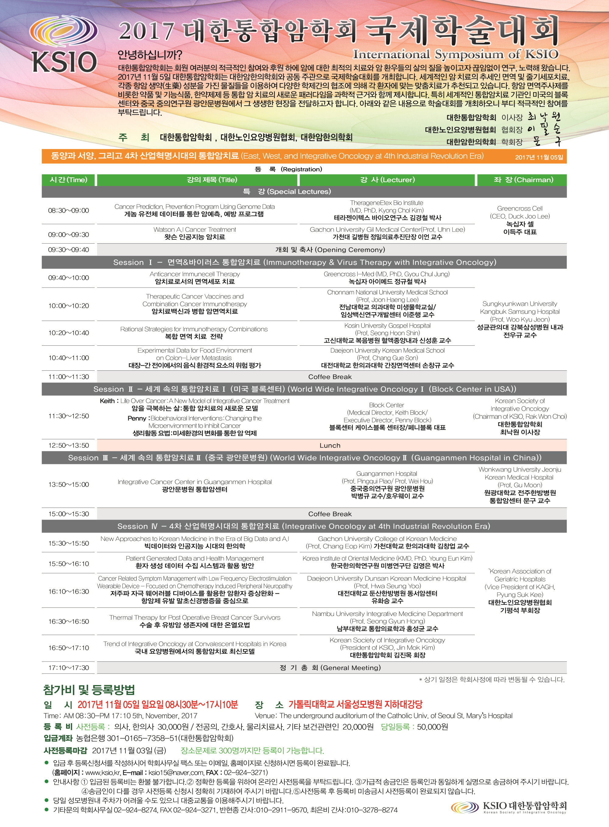 17/11/5 대한통합암학회 국제학술대회 페이지 정보 작성자 작성일19-07-01 16:39 조회1,295회 댓글0건 관련링크 이전글 다음글 목록 본문 <아래 이미지를 클릭하시면 크게 보실 수 있습니다.> 댓글목록 등록된 댓글이 없습니다. 이전글 다음글 목록