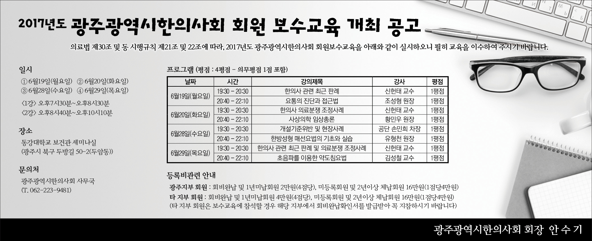 6/19,20,28,29 광주광역시한의사회 보수교육 페이지 정보 작성자 작성일19-07-01 16:39 조회1,045회 댓글0건 관련링크 이전글 다음글 목록 본문 <아래 이미지를 클릭하시면 크게 보실 수 있습니다.> 댓글목록 등록된 댓글이 없습니다. 이전글 다음글 목록