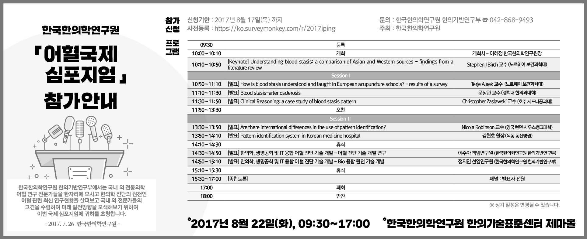 8/22 한국한의학연구원-어혈국제심포지엄 페이지 정보 작성자 작성일19-07-01 16:39 조회1,021회 댓글0건 관련링크 이전글 다음글 목록 본문 <아래 이미지를 클릭하시면 크게 보실 수 있습니다.> 댓글목록 등록된 댓글이 없습니다. 이전글 다음글 목록