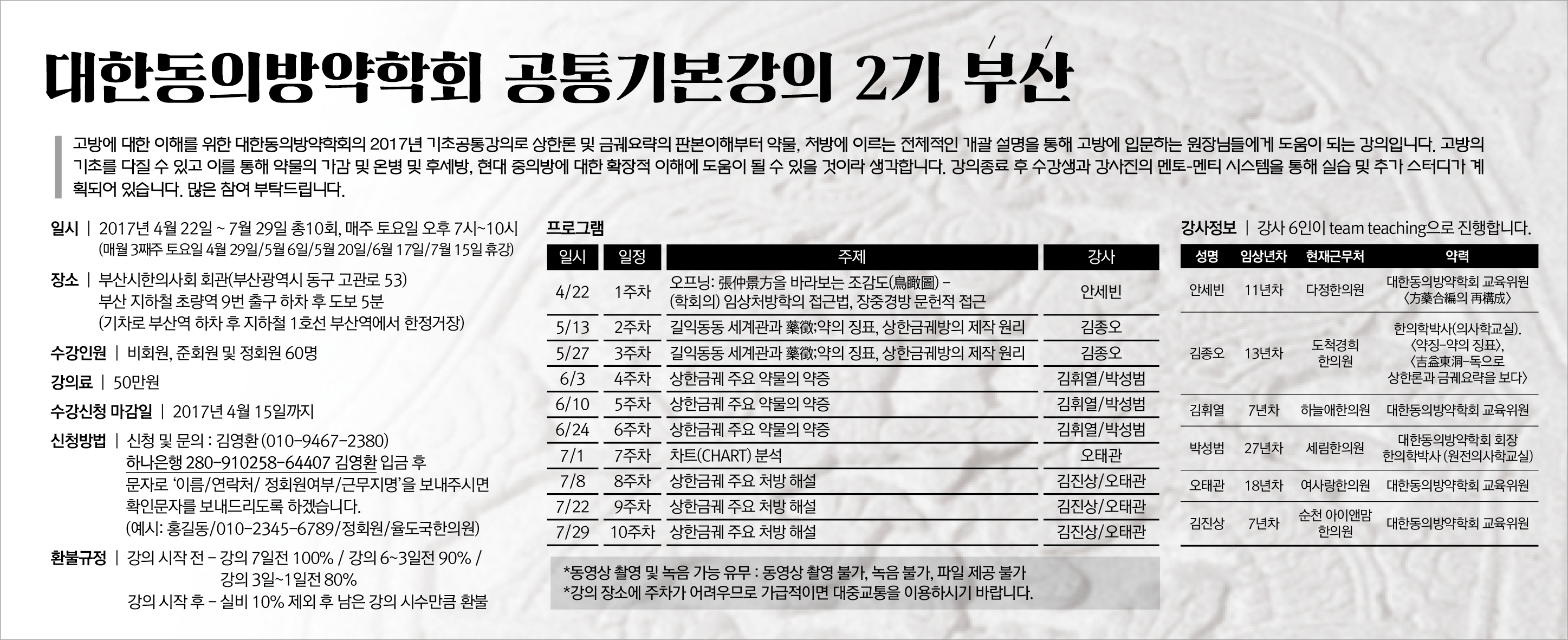 4/22~ 대한동의방약학회 공통기본강의 2기(부산)