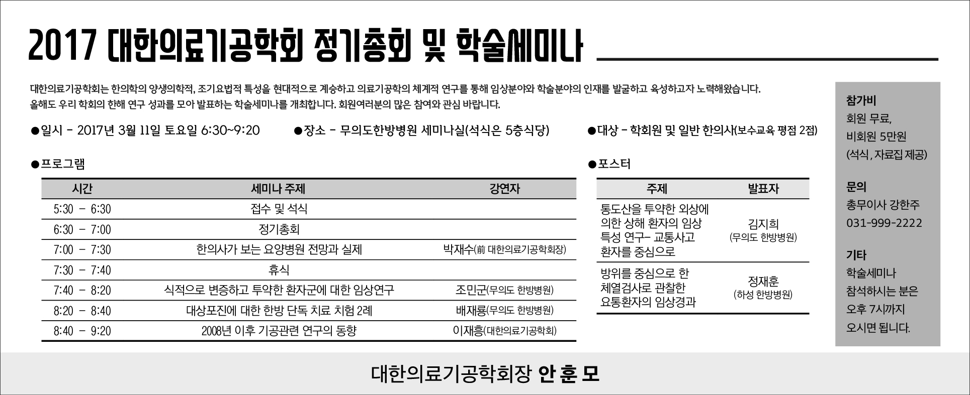 3/11 대한의료기공학회 정기총회 및 학술세미나