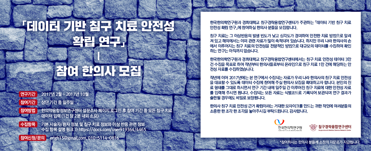 데이터 기반 침구치료 안전성 확립 연구 참여자 모집