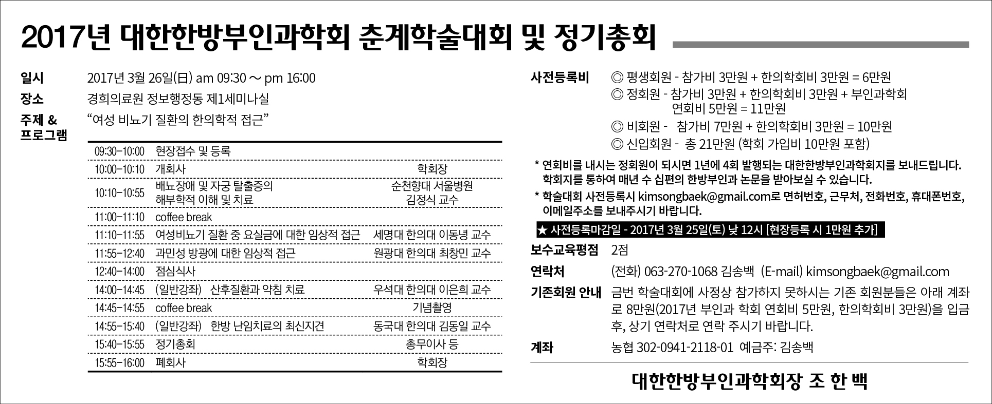 3/26 대한한방부인과학회 춘계학술대회 및 총회