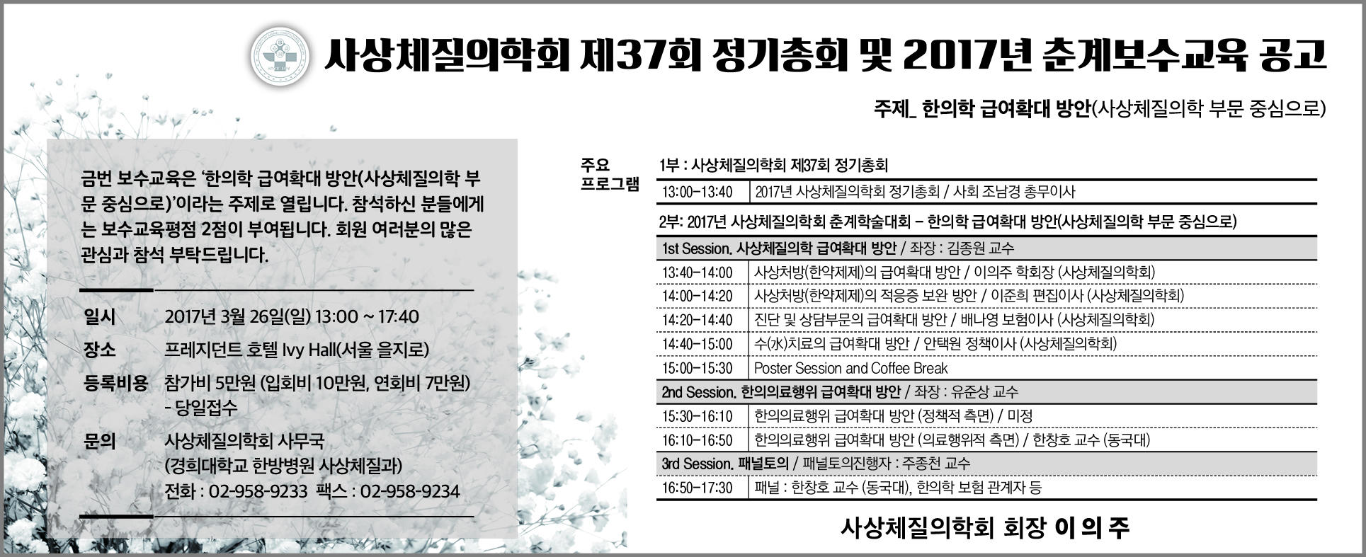 3/26 사상체질의학회 정기총회 및 춘계보수교육