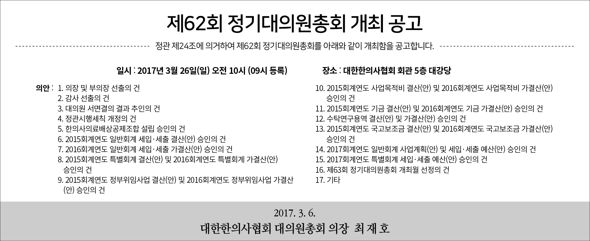 3/26 제62회 대한한의사협회 정기대의원총회