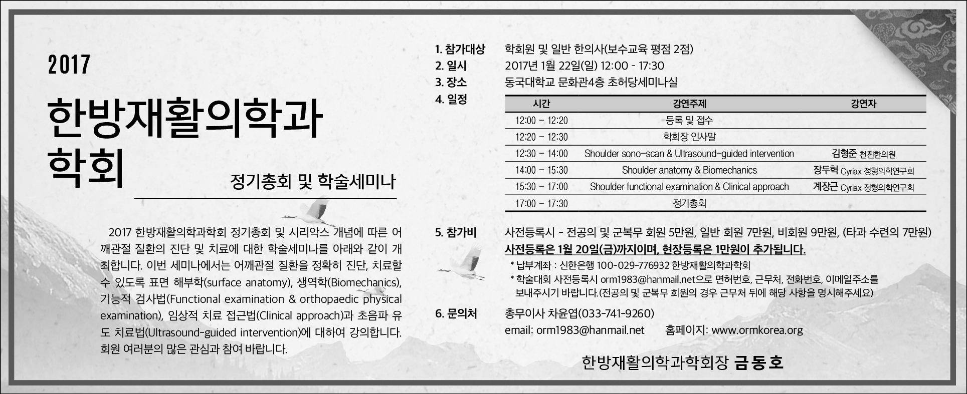 1/22 한방재활의학과학회 정기총회 및 학술세미나