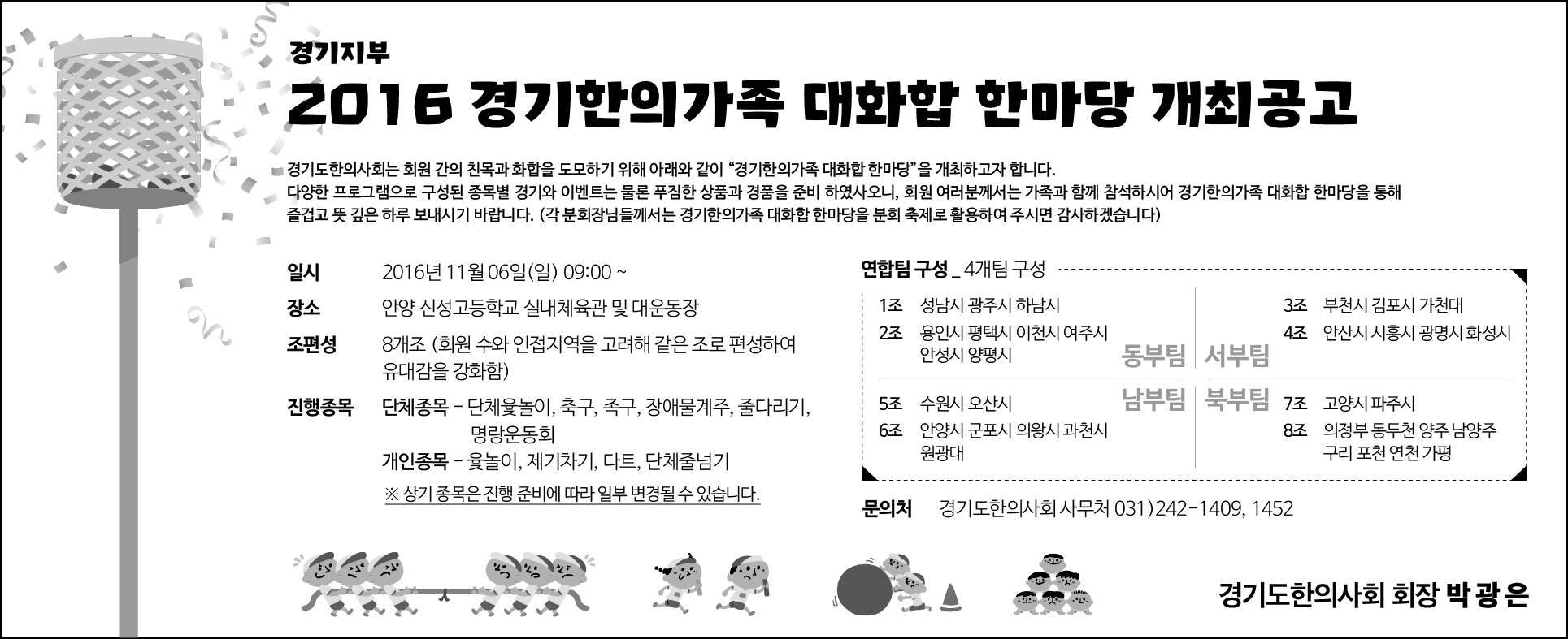 11/6 경기한의가족 대화합 한마당 페이지 정보 작성자 작성일19-07-01 16:39 조회747회 댓글0건 관련링크 이전글 다음글 목록 본문 <아래 이미지를 클릭하시면 크게 보실 수 있습니다.> 댓글목록 등록된 댓글이 없습니다. 이전글 다음글 목록