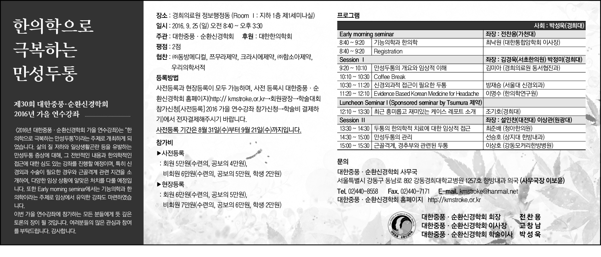 9/25 대한중풍순환신경학회 가을 연수강좌
