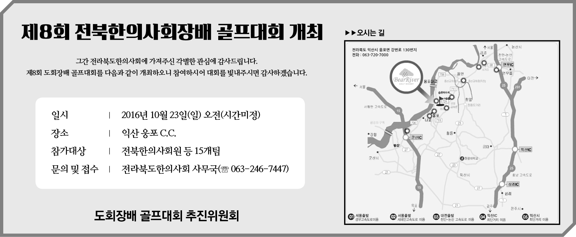 10/23 제8회 전북한의사회장배 골프대회 페이지 정보 작성자 작성일19-07-01 16:39 조회721회 댓글0건 관련링크 이전글 다음글 목록 본문 <아래 이미지를 클릭하시면 크게 보실 수 있습니다.> 댓글목록 등록된 댓글이 없습니다. 이전글 다음글 목록