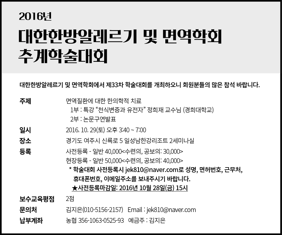 10/29 대한한방알레르기 및 면역학회 추계학술대회 페이지 정보 작성자 작성일19-07-01 16:39 조회1,157회 댓글0건 관련링크 이전글 다음글 목록 본문 <아래 이미지를 클릭하시면 크게 보실 수 있습니다.> 댓글목록 등록된 댓글이 없습니다. 이전글 다음글 목록