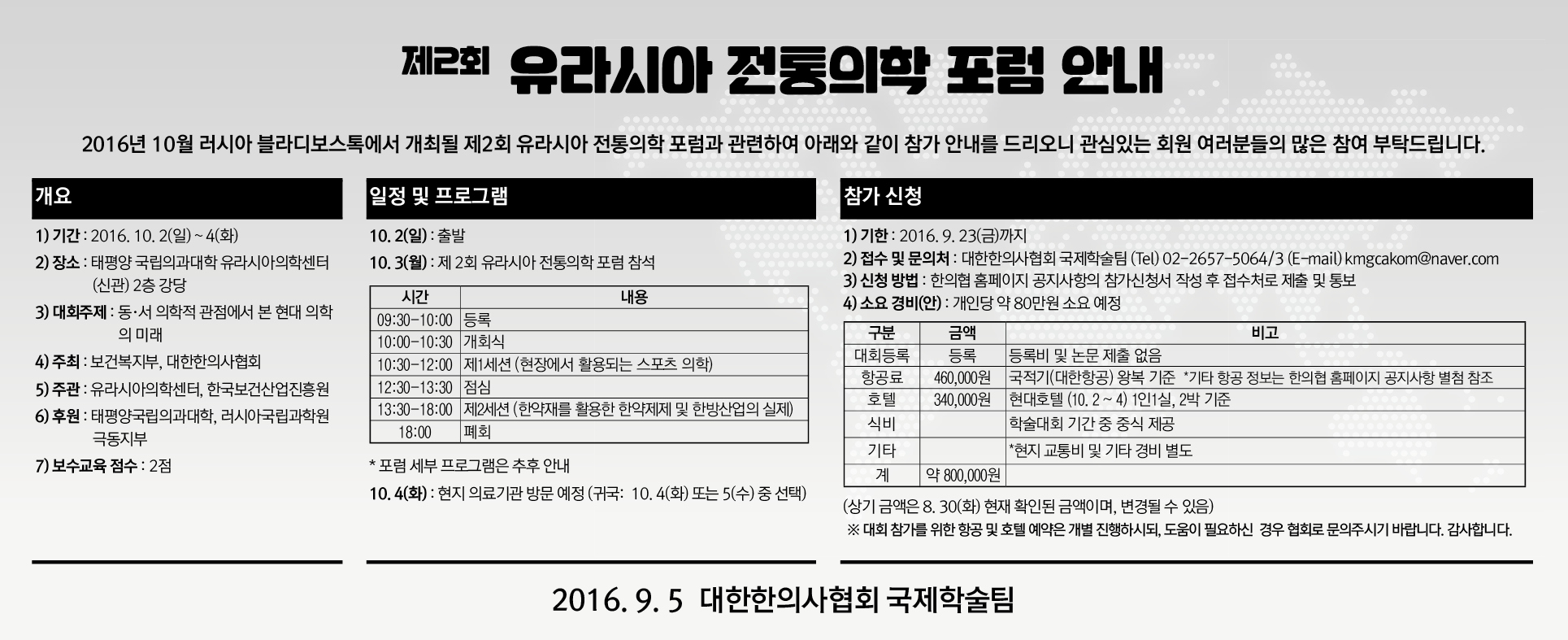 ~9/23 제2회 유라시아 전통의학 포럼 참가 신청