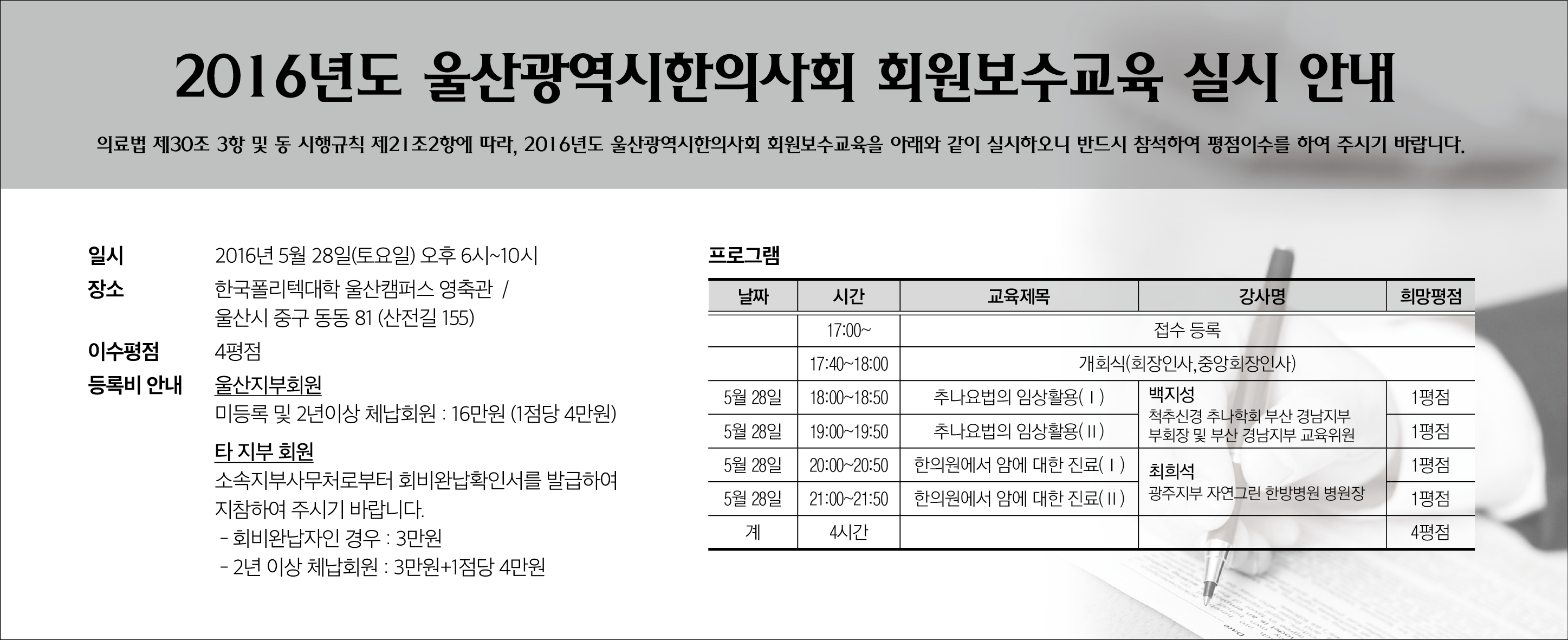5/28 울산지부 회원보수교육 실시 안내 페이지 정보 작성자 작성일19-07-01 16:39 조회919회 댓글0건 관련링크 이전글 다음글 목록 본문 <아래 이미지를 클릭하시면 크게 보실 수 있습니다.> 댓글목록 등록된 댓글이 없습니다. 이전글 다음글 목록