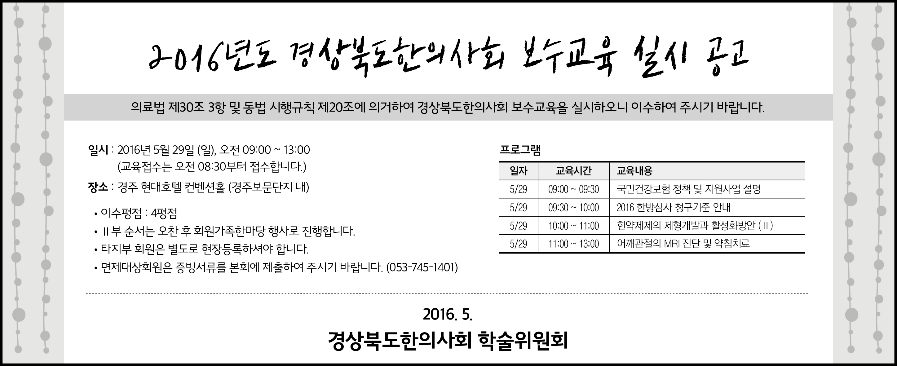 5/29 경북지부 보수교육 실시 공고