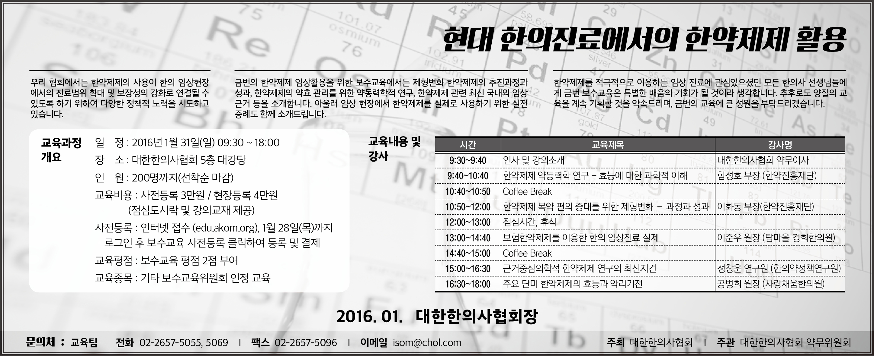1/31 보수교육-현대 한의진료에서의 한약제제 활용