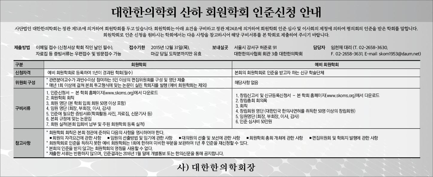 12/31까지 대한한의학회 회원학회 인준신청 페이지 정보 작성자 작성일19-07-01 16:39 조회513회 댓글0건 관련링크 이전글 다음글 목록 본문 댓글목록 등록된 댓글이 없습니다. 이전글 다음글 목록