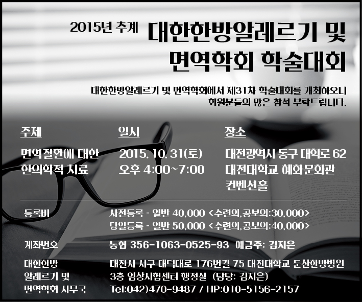 10/31 대한한방알레르기 및 면역학회 학술대회 페이지 정보 작성자 작성일19-07-01 16:39 조회608회 댓글0건 관련링크 이전글 다음글 목록 본문 댓글목록 등록된 댓글이 없습니다. 이전글 다음글 목록